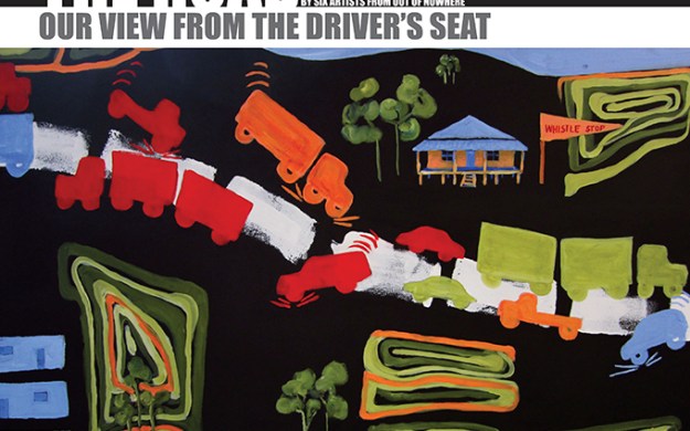 The 6 Artists from out of Nowhere are country people connected to the land. Their lives and livelihoods are being challenged, by the demands of mining to access and transform land use and also transform the once familiar and reliable road systems. The artists are not happy with this situation. They state: ‘the highway has become so busy and so dangerous that we felt compelled to comment in paint.’ The exhibition is simultaneously a report and a shout for an improvement to the circumstances of those who no other option than to use this thoroughfare.